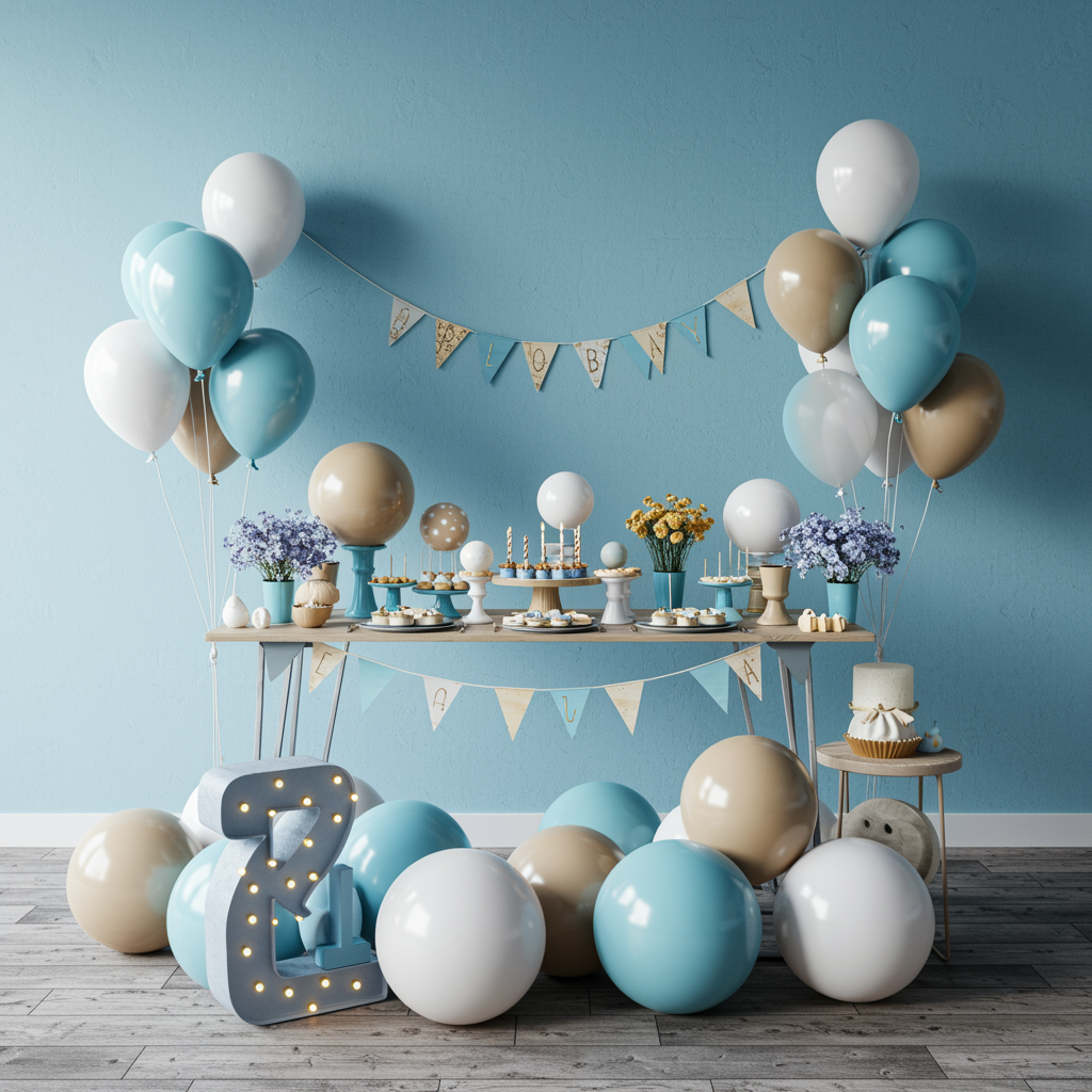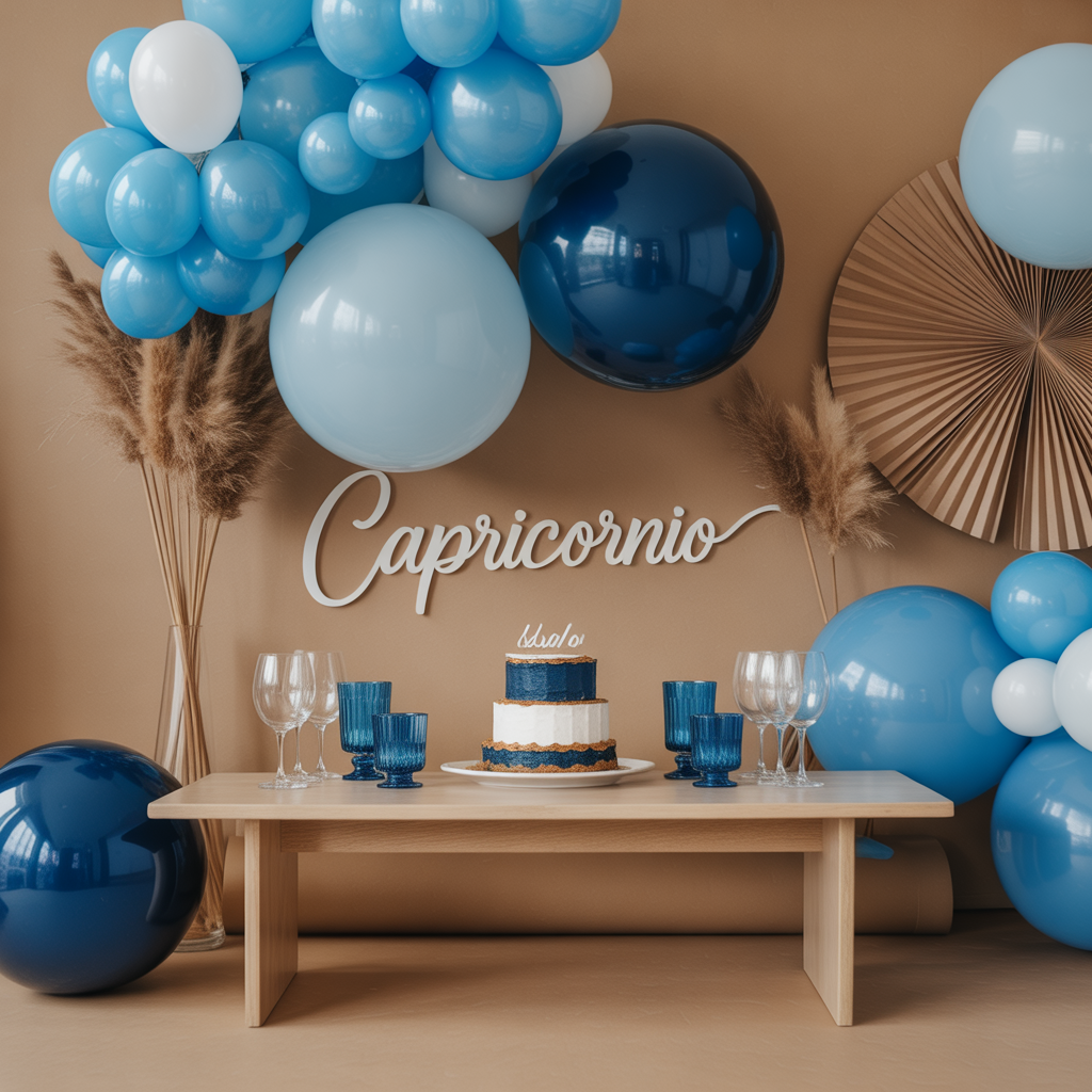 Idea 1: Fiesta azul elegante con detalles caféUna celebración sofisticada, ideal para capricornianos que disfrutan de ambientes ordenados y con estilo. Decoración recomendada