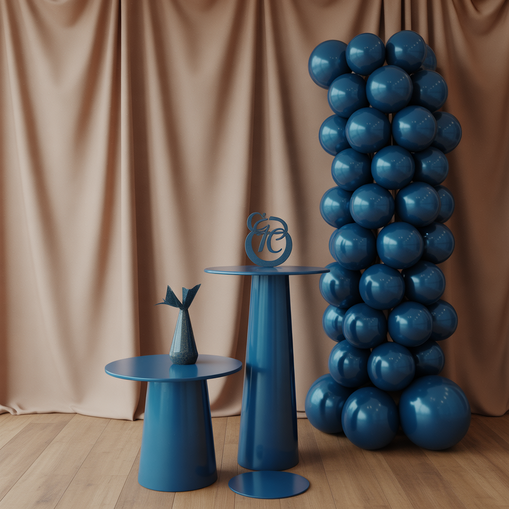 Idea 3: Fiesta azul marino y café oscuroUna alternativa sobria y elegante, perfecta para celebraciones nocturnas o eventos más formales. Decoración recomendada