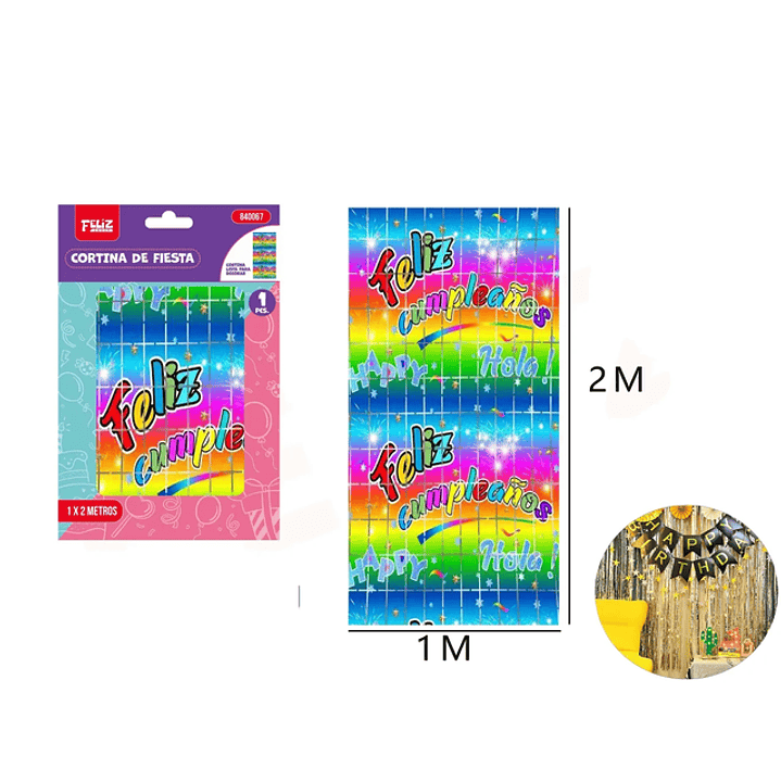 Cortina de Fiesta 1x2M con Frase y diseño multicolor