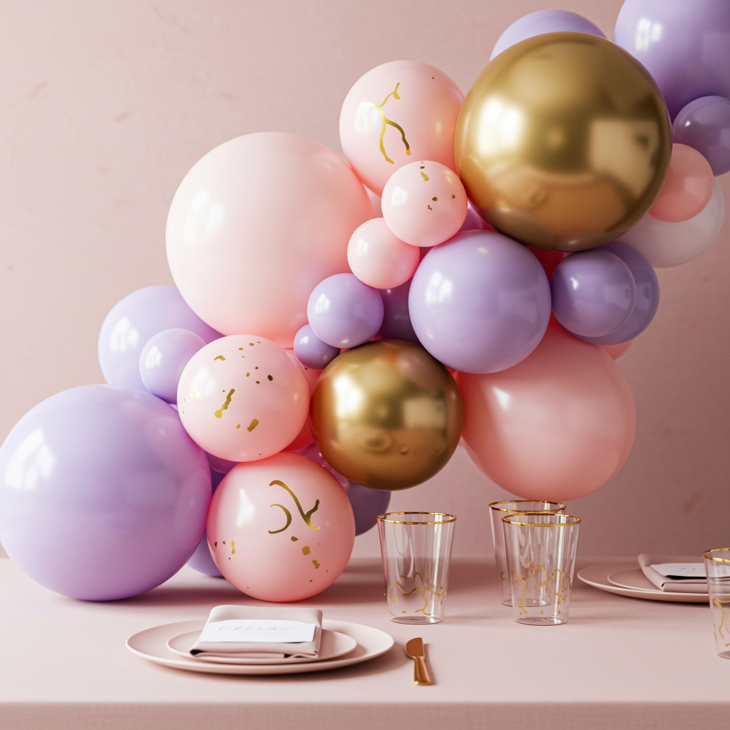 Idea 3: Decoración Piscis romántica en rosado pastel, lavanda y dorado suave. Una alternativa más cálida y romántica, perfecta para quienes buscan una estética delicada y armoniosa. Decoración recomendada